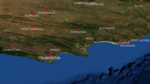 In other cases, raster data can be computed. For example an insurance company may take police crime incident reports and create a country wide raster map showing how high the incidence of crime is likely to be in each area. Meteorologists (people who study weather patterns) might generate a province level raster showing average temperature, rainfall and wind direction using data collected from weather stations (see figure_csir_station). In these cases, they will often use raster analysis techniques such as interpolation (which we describe in Topic Spatial Analysis (Interpolation)).
