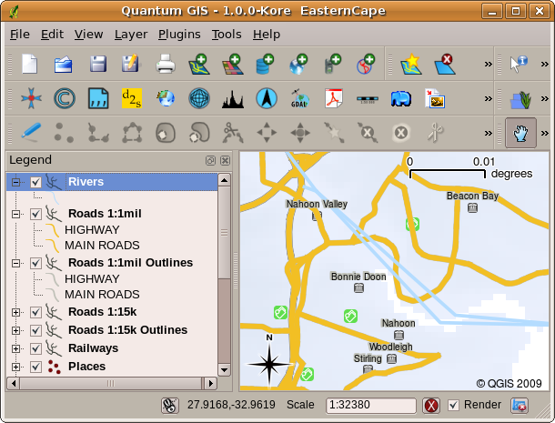 Há muitas aplicações SIG diferentes disponíveis. Alguns têm muitos recursos sofisticados e custam dezenas de milhares de Rands para cada cópia. Em outros casos, você pode obter um aplicativo SIG gratuitamente. Decidir quais aplicativos SIG pode usar é uma questão de quanto dinheiro você pode pagar e a preferência pessoal. Para estes tutoriais, estaremos usando o aplicativo QGIS. QGIS é totalmente gratuito e você pode copiá-lo e compartilhá-lo com seus amigos, tanto quanto você gosta. Se você recebeu este tutorial em formato impresso, você deve ter recebido uma cópia do QGIS com ele. Se não, você pode sempre visitar http://hub.qgis.org/projects/quantum-gis/wiki/Download para baixar sua cópia gratuita se você tem acesso à internet.