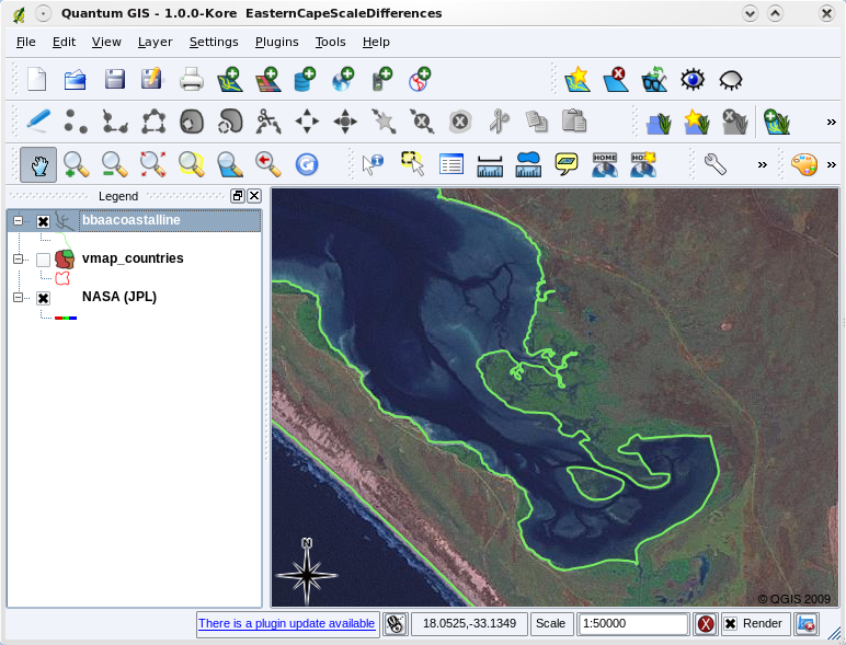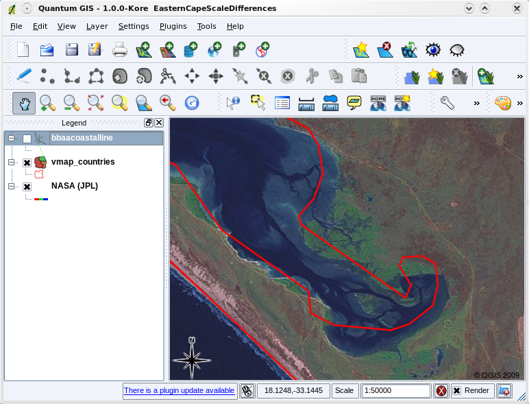 A escala do mapa é um importante problema a ser considerado quando trabalhamos com dados vetoriais em um SIG. Quando os dados são capturados, geralmente são digitalizados a partir de mapas existentes, ou tomando informações de registros topográficos e dispositivos de sistema de posicionamento global. Mapas possuem diferentes escalas, por isso, se você importar dados vetoriais a partir de um mapa em um ambiente SIG (por exemplo digitalizando mapas em papel), os dados vetoriais digitais terão os mesmos problemas de escala que o mapa original. Este efeito pode ser visto na ilustração figure_vector_small_scale e figure_vector_large_scale. Muitos problemas podem surgir devido a má escolha da escala do mapa. Por exemplo, usando o dado vetorial da ilustração figure_vector_small_scale para planejar a conservação de zonas úmidas pode ocorrer que partes importantes do pantanal seja deixado de fora da reserva! Por outro lado, se você está tentando criar um mapa de uma região, usando dados capturados em 1:1.000.000 pode ser suficiente e você economizará muito tempo e esforço na captura dos dados.